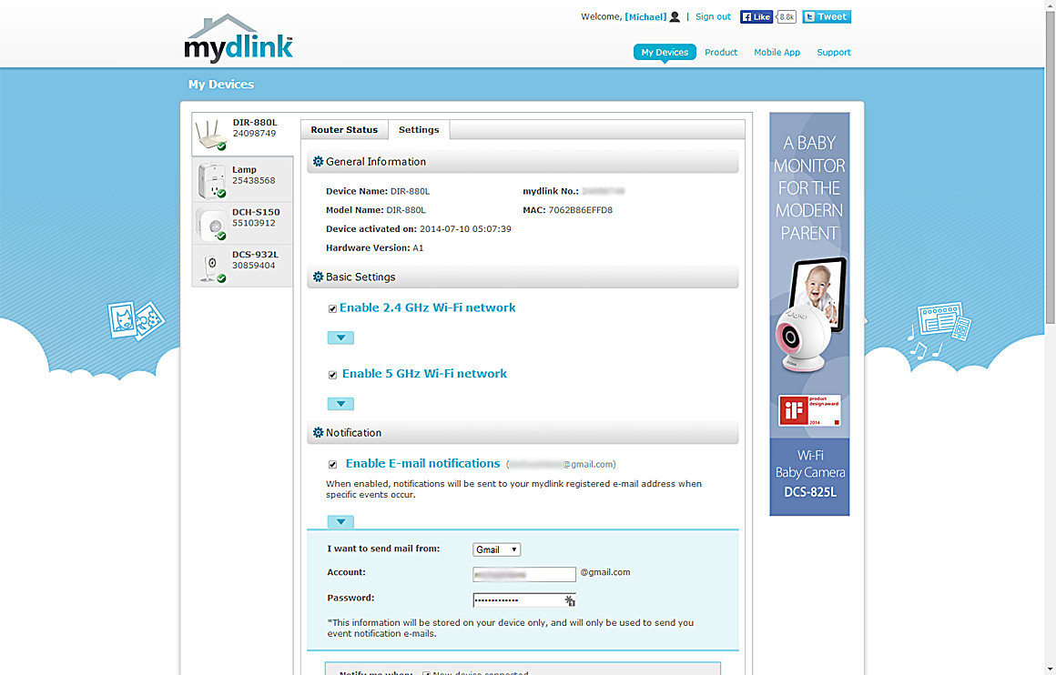 | Портал Mydlink позволяет управлять маршрутизатором DIR-880Lиз облака |