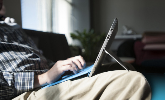 | Измененная конструкция Type Cover придает Surface Pro 3 дополнительную устойчивость при размещении планшета на коленях |