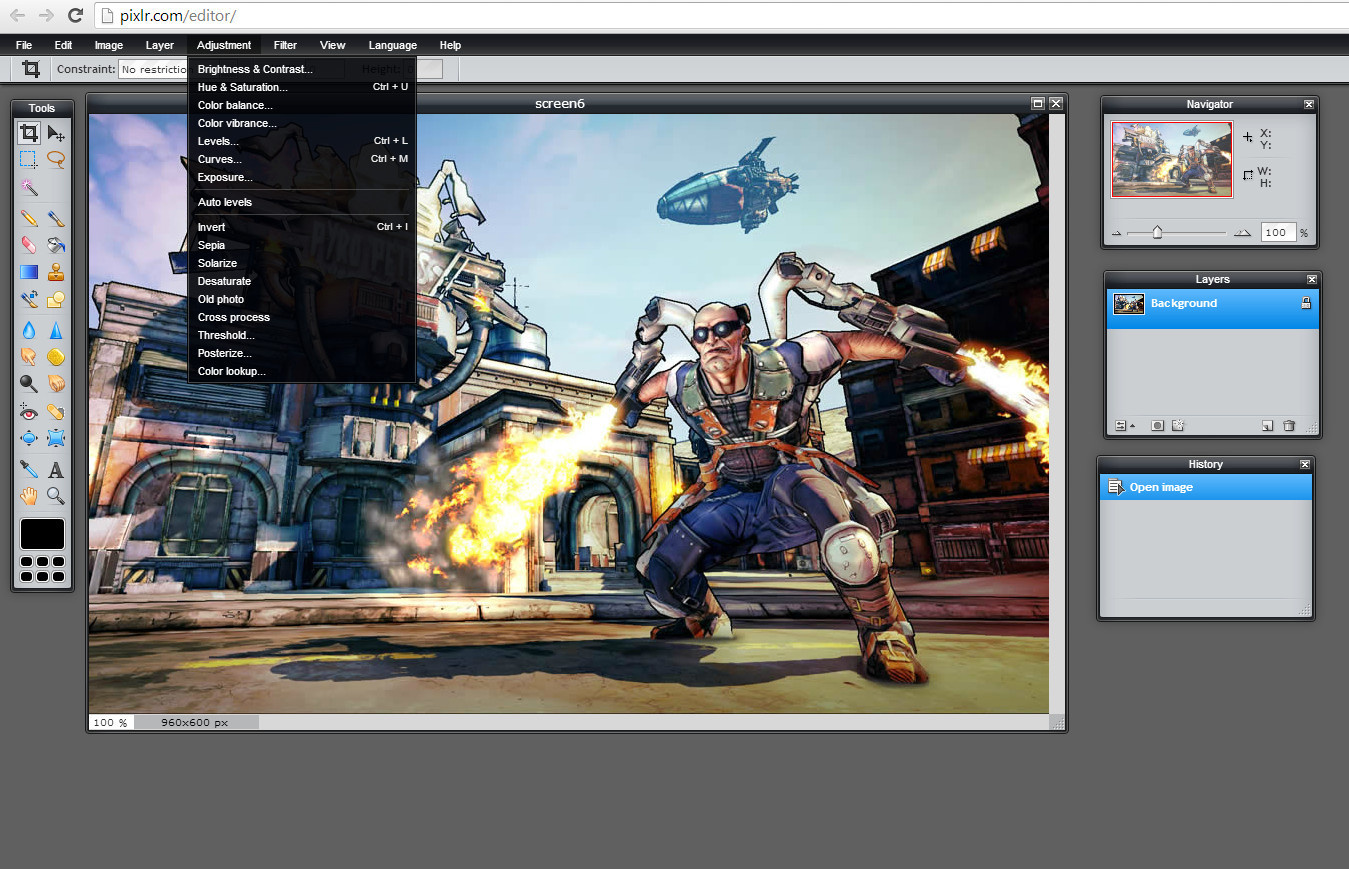 Вниманию тех, кто хочет отредактировать изображение, предлагается веб-приложение PixlrEditor. Конечно, это не Photoshop, но сервис PixlrEditor легко заткнет за пояс программу Paint, входящую в состав Windows. Здесь имеется широкий набор инструментов, фильтров, параметров настройки и даже поддержка слоев. Создавать изображения можно с нуля, сохраняя их на своем локальном жестком диске или на веб-сайте. Кроме того, у вас есть возможность сохранить локальную копию своей работы.