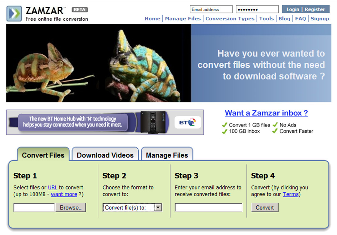 Zamzar предлагает более 1200 форматов файлов, но объем конвертируемых файлов не может превышать 100 Мбайт. Для конвертации файла большего размера придется оформить подписку.