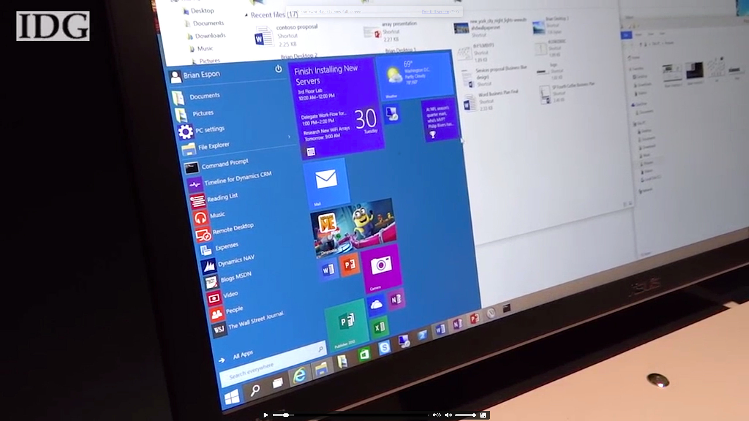 Как свидетельствуют утекшие в Сеть видео, при желании пользователь может перейти и на начальный экран Windows 8. Однако на этой особенности внимание не акцентируется, в связи с чем я понял, что большинство людей отдают все же предпочтение представлению Рабочего стола.
