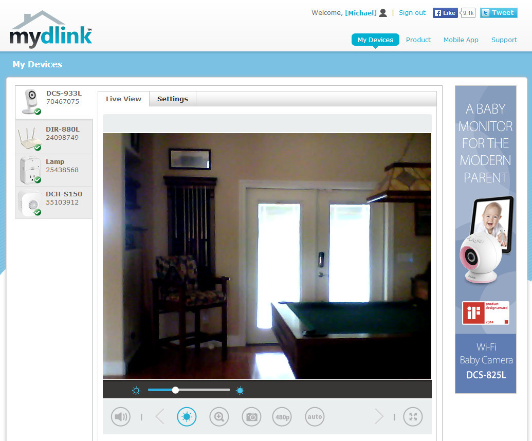 Зарегистрировав бесплатную учетную запись mydlink, можно следить за одной или несколькими камерами через Интернет с помощью ПК, планшета или смартфона. Сервис поддерживает все основные элементы управления, включая кнопку срабатывания затвора, благодаря чему у вас появляется возможность делать снимки и сохранять их на своем устройстве. Однако D-Link не позволяет сохранять фотографии и видеозаписи в облаке. Вот почему инициировать фотосъемку приходится самостоятельно.