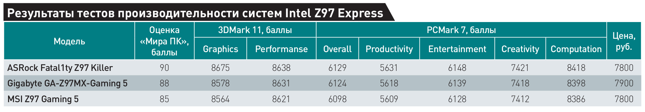 ASRock Fatal1ty Z97 Killer (средняя цена — 7800 руб.)