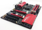 Теперь пару слов о внешнем виде платы. Сразу же бросаются в глаза массивные красные радиаторы, эффектно выделяющиеся на черном цвете текстолита. Похоже, что над оформлением поработали не только инженеры, но и дизайнеры — и это правильно, ведь системная плата является главным элементом персонального компьютера.