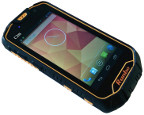Выглядит эта модель довольно агрессивно. Корпус аппарата изготовлен из прочного пластика и полностью прорезинен, что неплохо защищает устройство. На его торце размещены кнопки регулировки звука, включения камеры, клавиша SOS, а также кнопка push-to-talk, предназначенная для включения встроенной в смартфон рации. В нижней части находятся разъем для наушников и слот для microUSB. Кроме того, в верхней части аппарата установлены разъем для антенны и лазерная указка.