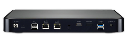 Модель HS-251 имеет значительно больше общего с потребительскими устройствами QNAP старшего класса, чем более дешевое оборудование HS-210. Во-первых, здесь представлен достаточно широкий выбор портов: два разъема Ethernet обеспечивают более высокую гибкость и надежность, два порта USB 2.0 служат для подключения периферийных устройств, два порта USB 3.0 — для подключения устройств хранения (или Wi-Fi-адаптера 802.11ac), а порт HDMI предназначен для вывода изображения на экран.