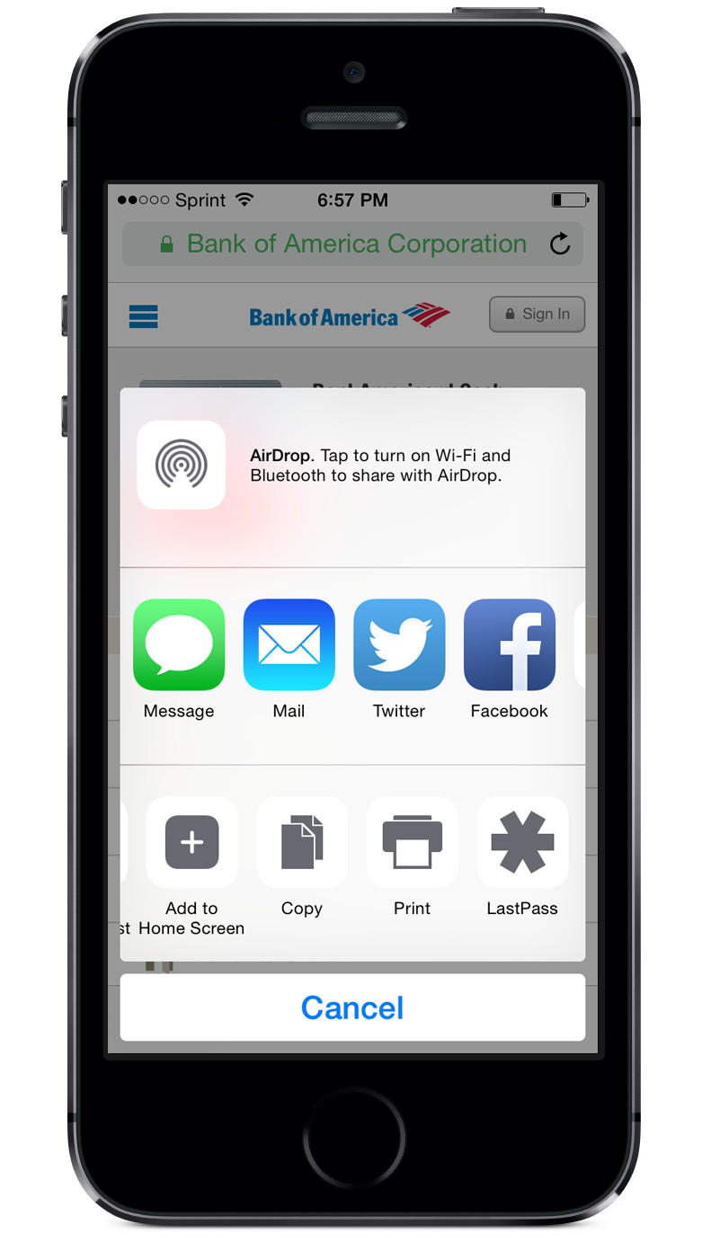 | После установки букмарклета Safari вы можете вводить пароли с помощью кнопки браузера Share |