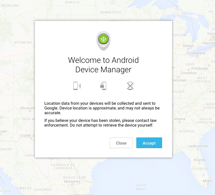 Возможно одно из двух: либо на экране сразу отобразится местоположение вашего устройства, либо вам будет предложено направить уведомление на телефон или планшет. Дотроньтесь до предупреждения, отобразившегося на экране устройства, чтобы предоставить Android Device Manager необходимые разрешения для отслеживания текущего местоположения телефона.