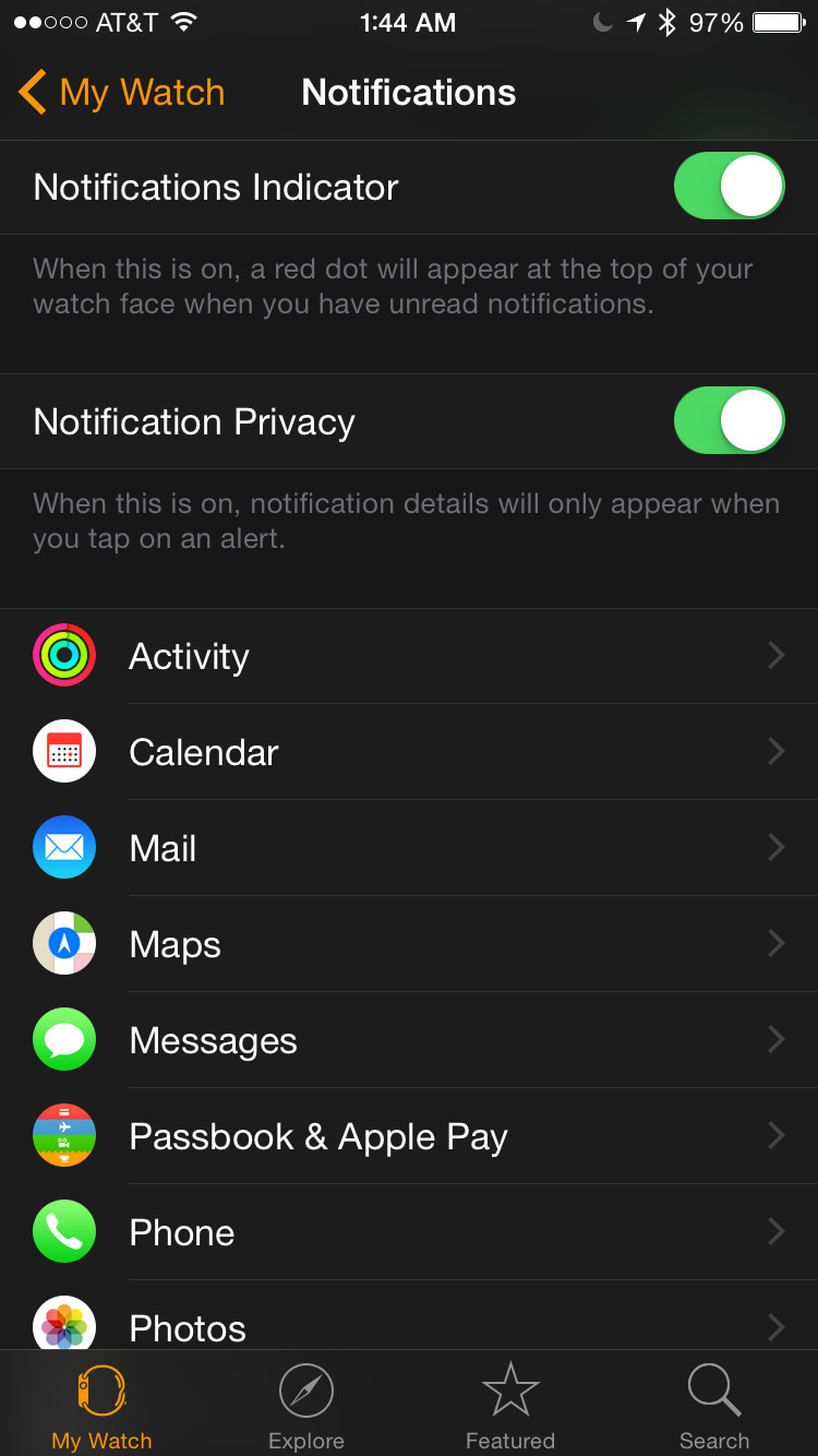 Часы Apple Watch помогли мне переосмыслить важность сообщений. Отслеживать на запястье счет в спортивной битве гигантов бывает полезно, а вот информация о том, когда в Instacast появятся эпизоды новых подкастов, мне совершенно не нужна. В приложении Apple Watch для iPhone можно выяснить, какие уведомления будут попадать на часы. А настройки приложения Settings определяют, какие уведомления будут отображаться на iPhone. И будьте готовы к тому, что, по крайней мере, в первую неделю вам придется то и дело переключаться между устройствами. Я уже упоминала об этом раньше и повторяю снова: надеюсь, что в iOS 9 компания Apple пересмотрит всю систему уведомлений, потому что с проявлением Apple Watch уровень сложности здесь значительно возрос.