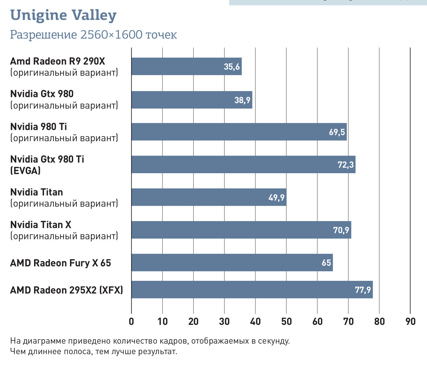 Великолепная игра Dragon Age: Inquisition выпускалась при участии AMD, но сейчас платы Nvidia здесь явно лидируют. Заметьте, что R9 295x2 не поддерживает здесь профиль CrossFire и использует лишь один графический процессор.