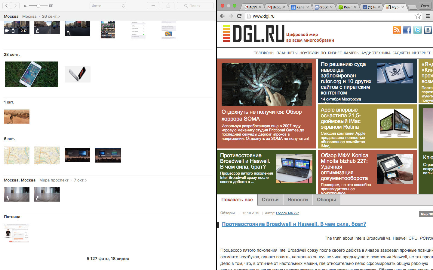 Наиболее заметным из них станет новая функция Split View, напоминающая аналогичную функцию для iPad в iOS 9. Но, в отличие от iPad, у пользователей Mac всегда имеется возможность разместить два окна рядом друг с другом. Тем не менее Split View действительно привносит в режим полноэкранного просмотра дополнительное измерение. Теперь вы можете не только растянуть приложение на весь экран, но и разделить экранное пространство между двумя приложениями, одно из которых будет находиться с левой стороны, а другое — с правой.