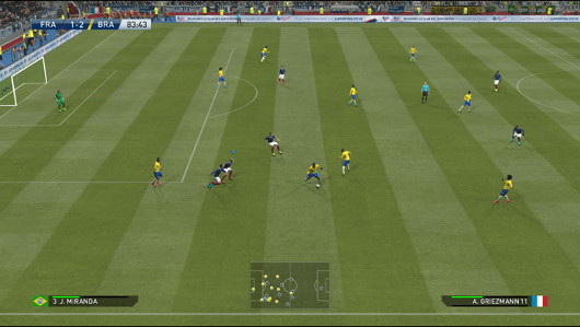 Однако самое главное — игровой процесс. Он по-прежнему более вдумчивый и тактический, бежать с шашкой наголо в атаку здесь не принято. Футбол получился не таким динамичным, как в FIFA, но быстрее, чем в прошлых Pro Evolution Soccer. Контролировать мяч трудно: он отскакивает от игроков, спортсмены могут случайно потерять его, отпустив слишком далеко. Это выливается в мгновенную смену расклада — только что вы шли в атаку и пробирались все ближе к штрафной зоне через защитников, а игрок не дотянулся до мяча. Ситуацией воспользовалась другая команда, моментально взяв инициативу в свои руки, и теперь вы со всех ног мчитесь спасать ворота, проклиная себя за излишне рискованные действия. Изрядная доля голов происходит не в результате продуманной и грамотной стратегии, а забивается случайно, что нередко имеет место и в реальном футболе. Играть от обороны и выжидать, пока соперник сделает ошибку, — вполне уместная тактика.