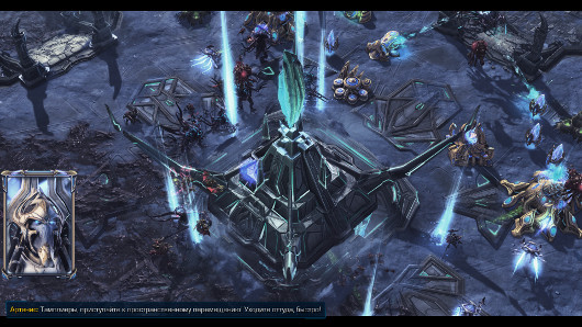 Сюжету уделяется большое внимание, но досконально знать события прошлых частей не нужно. Однако если хотите точно во всем разобраться, лучше освежить в памяти Wings of Liberty и Heart of the Swarm. Наряду с диалогами внутри миссий и разговорами между заданиями, игра, как и прошлые части, балует нас первоклассными роликами с новыми подробностями истории. Сами протоссы оказались еще более надменными и твердолобыми существами, чем виделось раньше. Что ни беседа — то разговор о чести, доблести, преемственности и традициях, что ни миссия — то красноречивые заявления о величии расы и необходимости пожертвовать собой ради всеобщего блага. Ситуацию разбавляет циничный Аларак, появляющийся примерно в середине игры. Слова персонажа полны издевок и сарказма в адрес Артаниса, который с завидным упорством пытается помочь всем и сразу. Аларак же гораздо интереснее, его мысли вполне рациональны и при этом более жестоки.