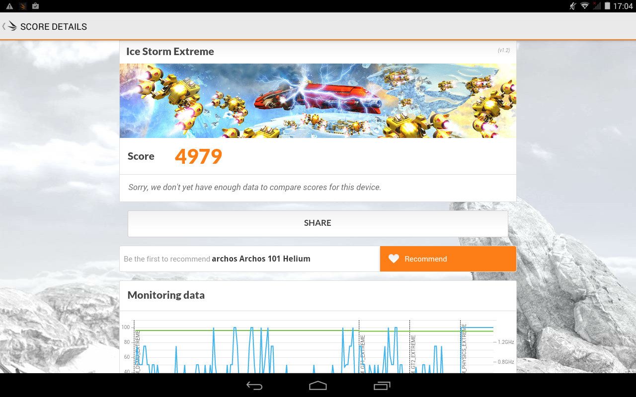 У аппарата четырехъядерный 64-битный процессор MT8732 с частотой 1,5 ГГц и графический чип Mali-T760MP2. Для модели такой цены показатели тестирования хорошие. Поскольку в ней установлен экран с HD-разрешением, начинка с играми успешно справляется.