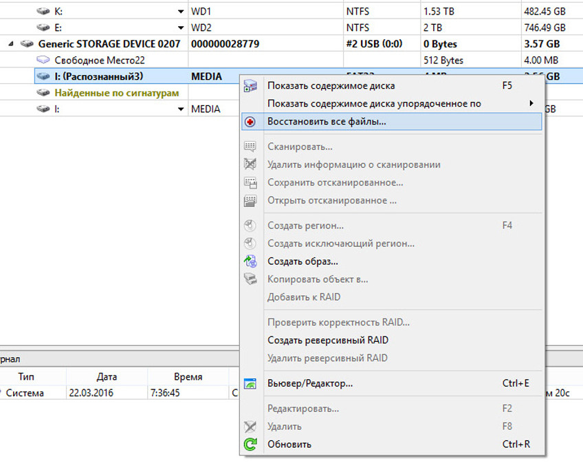 | Как только процесс завершится, необходимо правой кнопкой мыши щелкнуть на вкладке с восстанавливаемой картой памяти и выбрать пункт «Восстановить все файлы» |