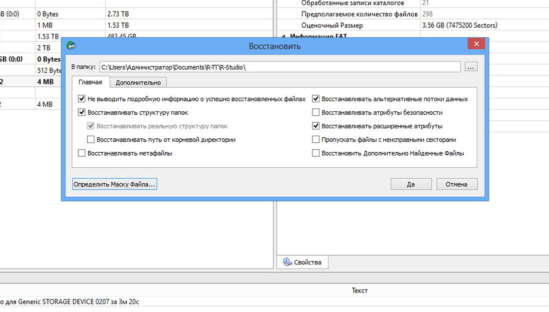 | Остается лишь указать папку для сохранения восстановленных файлов и запустить процесс |