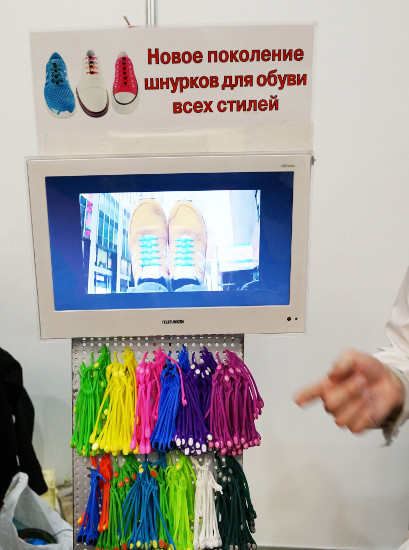 И конечно, немного удивил стенд со шнурками для ботинок, которые не нужно завязывать |