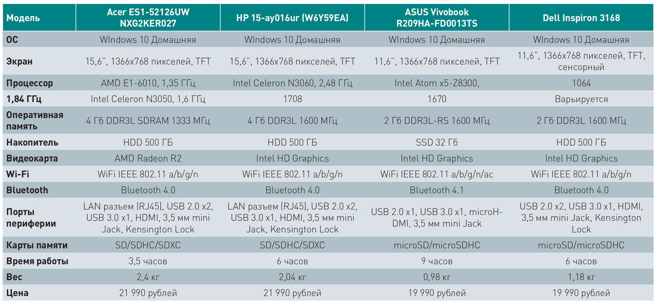 Всего для тестирования мы выбрали четыре модели самых именитых производителей: Dell, Asus, HP и Acer. Каждый из ноутбуков отличался рядом присущих только ему особенностей. Главными нашими критериями были цена, модель 2016 г., на борту Windows 10 в качестве ОС. За помощь в подборе устройств мы благодарим компанию «М.Видео», без которой не справились бы.