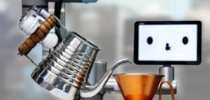 Улыбчивый робот представляет собой механическую руку с прикрепленным к ней планшетом, на экране которого во время исполнения заказа появляется подходящий смайлик.