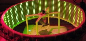 Роботизированная «болельшица» выглядит как кукла с горящими глазами, балансирующая на шаре, который позволяет качаться в разные стороны, вращаться и передвигаться.