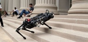 Четвероногий робот взбирается по опасным лестницам не глядя
