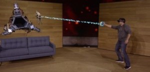 Среди них — пакет трехмерного моделирования HoloStudio, который был показан еще на первой публичном представлении шлема в январе 2015 года, и голографическая версия Skype, а также игра RoboRaid, в которой виртуальные роботы врываются в комнату через проломы в стенах.