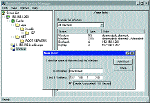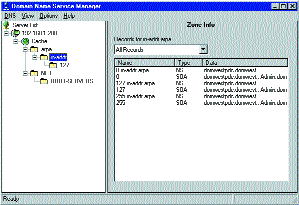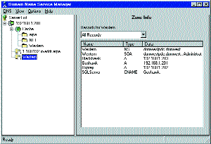 Как WINS и DHCP, DNS должна работать на системе NT Server. Установите все три сервиса, выбрав ярлык Service в апплете Network из Control Panel. Вы должны установить их на компьютере, имеющем фиксированный IP-адрес. После того, как вы инсталлировали программное обеспечение DNS и перезагрузили систему, вы увидите, что в группу программ Administrative Tools добавлен DNS Manager.