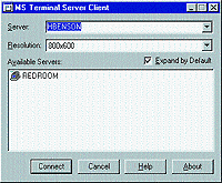 После того как вы распространили файлы на свои клиенты Terminal Server, настройка клиентского программного обеспечения для поиска системы Terminal Server особого труда не представляет. (Самое поразительное, что после установки клиента Terminal Server вам не придется перезагружать рабочие станции.) Единственное, что при конфигурации клиента может вызвать некоторое недоумение, — это лицензионное окно, где выводится сообщение, в котором говорится, что для работы клиента Terminal Server необходимо приобрести лицензию на NT Workstation. Разработчики Microsoft создали это окно еще до того, как изменили условия лицензирования Terminal Server. С 1 февраля компания предлагает три вида лицензий на клиент Terminal Server: Terminal Server Client Access License (CAL) для связи с системой Terminal Server в пределах офиса; Internet Connector (IC) для анонимных Internet-соединений с системой Terminal Server; лицензия для работы дома (предоставляется пользователям, имеющим корректный Terminal Server CAL для связи с системой Terminal Server через RAS).