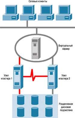 | РИСУНОК 2. Схема организации кластера на базе SQL Server 7.0 Enterprise Edition и MSCS. |