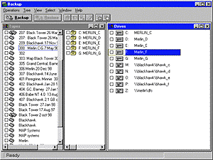 Кроме того, программа NTBackup имеет, как оказалось, ряд недостатков, связанных с построением каталогов резервируемых файлов, что несколько усложняет процедуру восстановления данных. (Более подробная информация об этом приведена во врезке «Загадочное исчезновение ленточного каталога»). Большинство администраторов предпочитает заменять встроенную программу резервирования программами независимых производителей, например, Cheyenne ARCserve, Seagate Backup Exec, UltraBac или NovaStor. Эти программные продукты позволяют выполнять гибкое планирование задания и просты в использовании. Однако внедрение такого решения потребует дополнительных затрат и технической поддержки.