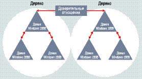 Операционная система NT 4.0 позволяет формировать из доменов не более чем двухуровневую иерархию, поскольку действие отношений доверия не переносится на новые уровни. Представьте себе три домена NT 4.0 — A, B, и C — и поставьте задачу: домены B и C должны доверять домену A, а домен C — домену B. Можно установить доверительные отношения между доменами B и A, а также между доменами C и A, однако явное доверительное отношение к домену B со стороны домена C в любом случае придется устанавливать особо. В системе Windows 2000 без этого можно обойтись. Для новой ОС разработчики Microsoft избрали в качестве применяемого по умолчанию протокола аутентификации протокол Kerberos 5, а это значит, что доверительные отношения теперь могут быть двусторонними и транзитивными. Иными словами, допускается многоуровневая иерархия доменов. Таким образом, можно сформировать «цепочку»: домен A доверяет домену B, который в свою очередь доверяет домену C, и т. д.