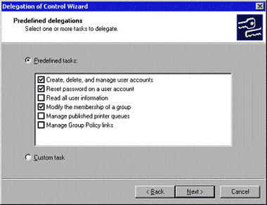 | ЭКРАН 2. Делегирование стандартного набора задач администрирования. |
