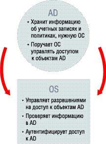 | Рисунок 1. Взаимодействие Active Directory с операционной системой. |