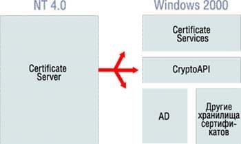 На Рисунке 3 видно, как сильно «похудела» Certificate Services по сравнению с Certificate Server, чьи отдельные части были переданы другим компонентам операционной системы.