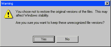 Специалисты Microsoft надеются, что благодаря WFP, который обеспечивает защиту системных файлов, пользователи не будут сталкиваться с неустойчивостью Windows 2000 по причине «библиотечного кошмара». Тем не менее не надо думать, что WFP — это своего рода «бронежилет» для системных файлов. Поскольку SFC имеет буфер ограниченного размера для фиксации изменений в контролируемом множестве файлов, существует опасность, что буфер может переполниться. Если это произойдет, SFC просто сбросит его содержимое. Или, например, если в каталоге %systemroot%system32 вдруг удаляются все системные файлы, то WFP будет не в состоянии произвести возврат к исходному состоянию, так как заранее неизвестно, что эти файлы удалены. В таком случае необходимо сканировать системные файлы с помощью утилиты sfc.exe с ключом /scannow или же воспользоваться опцией Repair, запустив программу установки Windows 2000 с CD-ROM для проведения перезаписи системных файлов.