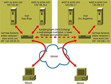 Как и Exchange Server 5.5, Exchange 2000 опрашивает каталог при получении запроса на доступ к двум большим категориям информации: таблице поиска адресов и данным настройки. Exchange 2000 всегда пытается выбрать контроллер, способный наилучшим образом обслужить запрос. Контроллер домена легко отвечает на запросы о локальных пользователях, но только GC может проводить поиск по базе адресов электронной почты. DNS извлекает информацию о контроллерах домена локального сайта и GC, так же как клиенты опрашивают локальные контроллеры при аутентификации. Если Exchange 2000 находит в сайте несколько контроллеров GC, он использует их циклически. Для распределения нагрузки по имеющимся GC можно применять службу Windows NT Load Balancing Service (WLBS).