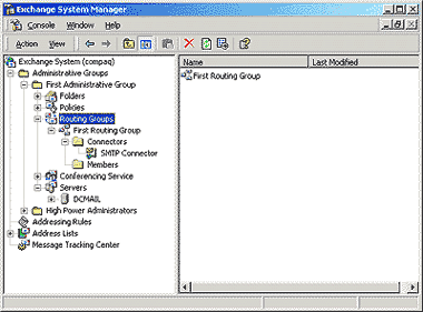 Принадлежность к группам администраторов позволяет управлять одним или несколькими серверами. Можно задавать определенные политики, обязывающие администраторов следовать правилам, или дать им возможность управлять серверами по своему усмотрению. Группы маршрутизации задают топологию передачи сообщений и способ обмена сообщениями между серверами Exchange. Как и в сайте Exchange Server 5.5, все серверы из группы маршрутизации автоматически соединяются между собой и передают сообщения напрямую один другому. Для объединения групп маршрутизации можно использовать коннекторы групп маршрутизации, SMTP или X.400. Коннекторы групп маршрутизации также применяют SMTP, разница между ними и коннекторами SMTP заключается в способе обращения к AD. Коннекторы групп маршрутизации пересылают сообщения, основываясь на данных настройки Exchange Server, хранимых в AD; коннекторы SMTP обращаются к DNS для нахождения SMTP серверов. Запись DNS может содержаться и в AD, и на DNS-сервере UNIX.