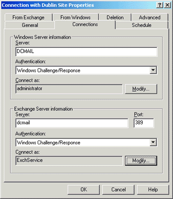 Соединить Exchange Server 5.5 и AD можно с помощью Active Directory Connector (ADC). ADC — одно- или двунаправленный соединитель, использующий протокол LDAP для синхронизации Exchange Server 5.5 Directory Store и AD. Каждый сайт Exchange Server 5.5 подсоединяется к AD с помощью отдельного «соглашения о соединении». Данное соглашение конкретизирует детали для репликации объектов по указанному соединению, тип соединения, метод аутентификации серверов и те серверы, которые будут поддерживать соединение.