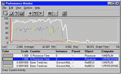 | ЭКРАН 2. Наблюдение за передачей данных с помощью Performance Monitor. |