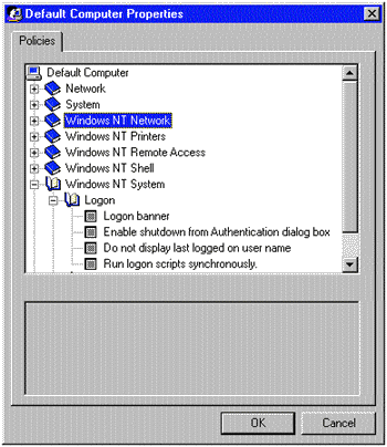 Системные политики NT позволяют централизованно управлять компьютерами. Ограничив права пользователей на перенастройку системы, администратор существенно облегчает свою задачу. Имеет смысл перед регистрацией пользователей в системе предупреждать их о применении системных политик. Например, о том, что компьютер является собственностью компании, предназначен для использования только уполномоченными сотрудниками и для определенных целей. Возможно, это не остановит нарушителя, но поможет поддерживать порядок в работе с компьютерами.