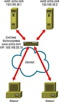 Если требуется перенаправлять трафик нескольким узлам (кластерам), то приходится пользоваться реализованной в DNS процедурой циклической выборки узла (round-robin feature), в которой не предусмотрены ни возможность передачи управления другому устройству в случае отказа аппаратуры, ни средства регулировки нагрузок на уровне серверов узла.