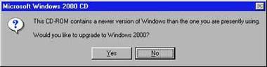 Создать систему с двойной загрузкой значительно проще, если уже установлена ОС Windows 98. Нужно просто запустить программу установки Windows 2000 Professional, не выбирая режим модернизации, как это показано на Экране 1. Также не следует преобразовывать раздел в NTFS (параметр Convert the partition to NTFS), так как Windows 98 не работает с разделами файловой системы. Если по неосторожности преобразовать корневой раздел (т. е. логический диск C) в формат NTFS, то Windows 98 уже не загрузится. На других разделах можно установить NTFS, но Windows 98 не будет их «видеть». Если процедура установки Windows 2000 Professional шла в обычном режиме, появляется меню, в котором можно выбрать операционную систему (Windows 2000 Professional или Windows 98) для загрузки. Добавить Windows 2000 Professional к Windows 98 очень просто, поэтому при создании системы с двойной загрузкой «с чистого листа» рекомендуется сначала установить Windows 98.