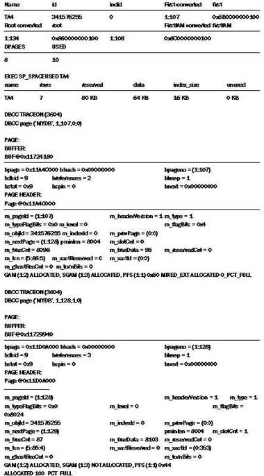 DBCC TRACEON (3604) DBCC page (?MYDB?, 1,112,0,0)