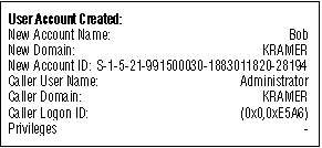 Категория аудита учетных записей содержит еще два интересных события. При нескольких безуспешных попытках войти в систему, Windows NT блокирует учетную запись домена и записывает событие №644, а событие №643 записывается всякий раз при изменении администратором требований к паролям в домене или при изменении политики блокировки учетных записей. Событие №643 не хранит информацию о конкретных изменениях, зато оно позволяет отслеживать изменения в той области, которая обычно остается довольно статичной на протяжении длительного времени. Событие №643 записывается также на серверах и рабочих станциях в случае изменения локальной системной политики.