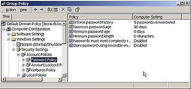 Шаг 1. В каталоге Computer ConfigurationWindows Settings Security SettingsAccount Policies Password Policy необходимо установить значение параметра Minimum password length. Это поможет создать надежный, трудновычисляемый пароль. Еще лучше использовать параметр Passwords must meet complexity requirements, который означает, что пароль обязан содержать символы как минимум из трех диапазонов: A-Z, a-z, 0-9, а также неарифметические символы (например, !, $, #, % ). Кроме того, можно задействовать программы оповещения (notification packages, специально разработанные DLL), которые помогут пользователям формировать пароли в соответствии со сложными требованиями. С помощью DLL администратор может потребовать добавлять имя DLL в качестве значения параметра NotificationPackages, расположенного в реестре в HKEY_LOCAL_ MACHINESYSTEMCurrentControlSetControlLSA. Этот способ работает как в NT, так и в Windows 2000.