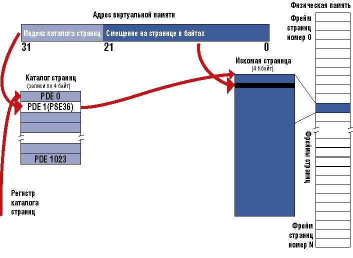 | Экран 3. Трансляция адресов виртуальной памяти для x86 при использовании механизма PSE36. |