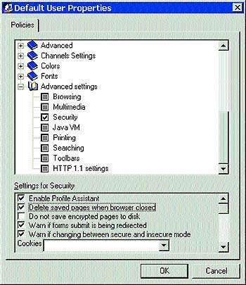 Если такие же настройки нужны на нескольких компьютерах и вы согласны на переустановку IE, то можно определить их как настройки по умолчанию. Это делается с помощью набора программ Internet Explorer Admini-stration Kit (IEAK), Outlook Deploy-ment Kit (ODK) или Microsoft Office 2000 Setup. При использовании IEAK, ODK или Office 2000 Setup нужно обязательно установить дополнительный пункт: During setup, clear the Disable Roaming Cache option. Этот пункт доступен во время установки и находится внутри секции User Profiles, конфигурация System Policies and Restrictions. На первый взгляд такой подход кажется не очень удачным, но специалисты Microsoft в статье «How Not to Save Cached Internet Files with Roaming User Profiles» (находится по адресу: http://support.microsoft.com/ support/kb/articles/q185/2/55.asp) утверждают обратное.