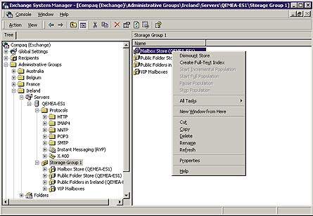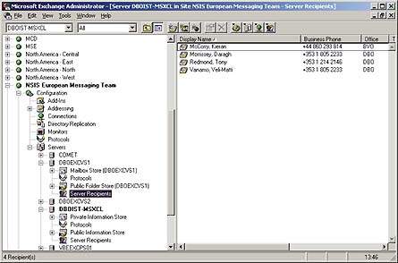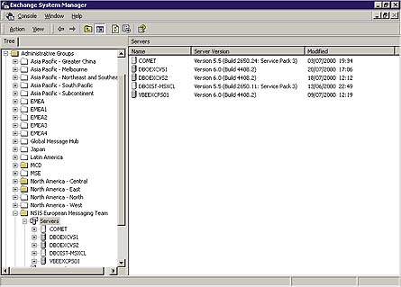 Программа администрирования сервера Exchange 5.5 оперирует информацией как о пользователях (например, почтовых ящиках, адресах), так и о сервере (например, коннекторах). Сервер Exchange 2000 вместо каталога Directory Store использует AD, поэтому средства управления разделены. Администрирование пользователей в Windows 2000 осуществляется при помощи расширения консоли Active Directory Users and Computers, а управление сервером Exchange 2000 выполняется через Exchange System Manager (ESM) в MMC. Exchange System Manager напоминает программу администрирования Exchange 5.5. В ESM собраны средства управления пользователями и добавлены такие новые возможности, как управление службой Instant Messaging (IM).