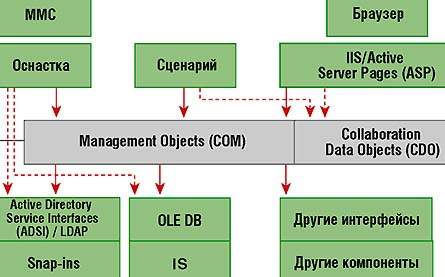 Модель администрирования сервера, лежащая в основе Microsoft Exchange 5.5, прекрасно зарекомендовала себя еще с момента выпуска Exchange 4.0 в 1996 г. И тем не менее реализованный в ней способ интеграции серверов уже не может удовлетворять требованиям крупных корпораций. Необходимы еще большая гибкость и больший контроль. Модель, построенная на интерфейсе программирования Messaging API (MAPI), весьма ограничена и не предоставляет необходимой поддержки в сфере администрирования. Это происходит в основном из-за того, что MAPI ориентирована на работу только с сервером Exchange.