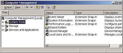Итак, в папке Administrative Tools содержится не так уж много инструментов, причем некоторые из них избыточны. Так, Services можно активизировать из модуля Component Services. Computer Management, показанный на Экране 1, содержит такие разделы, как Services и Event Viewer, а также все инструменты управления диском, представленные в папке System Tools.
